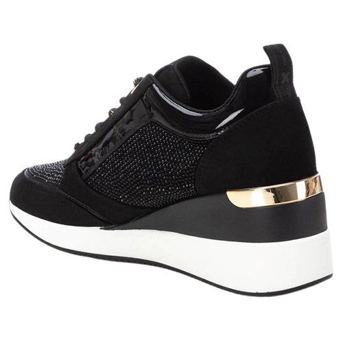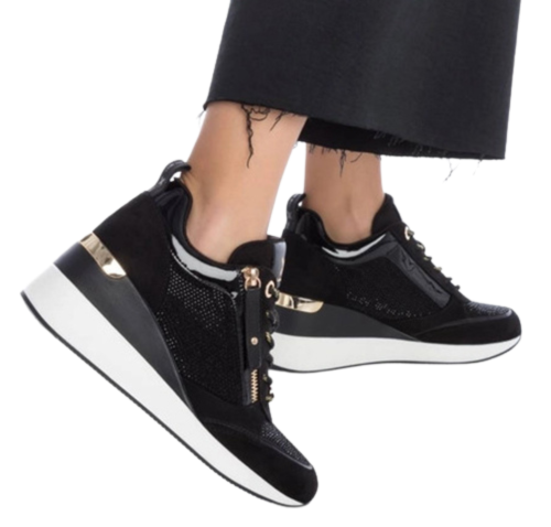Stylish trainers with side zip detail and side panels, metallic heel trim and two tone wedge sole.