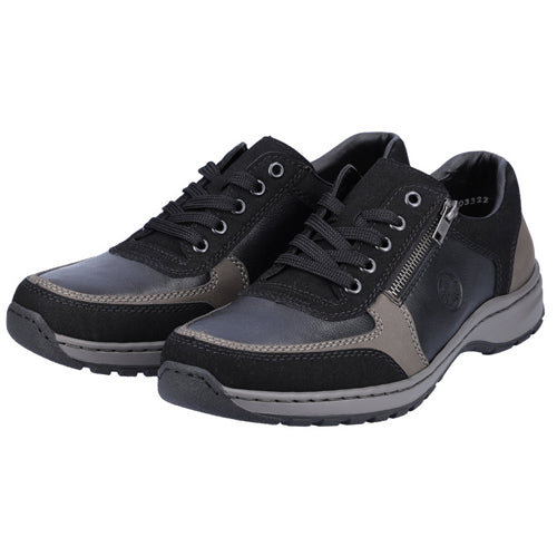 Rieker 03322-00  laced casual shoes in black/light & dark grey.