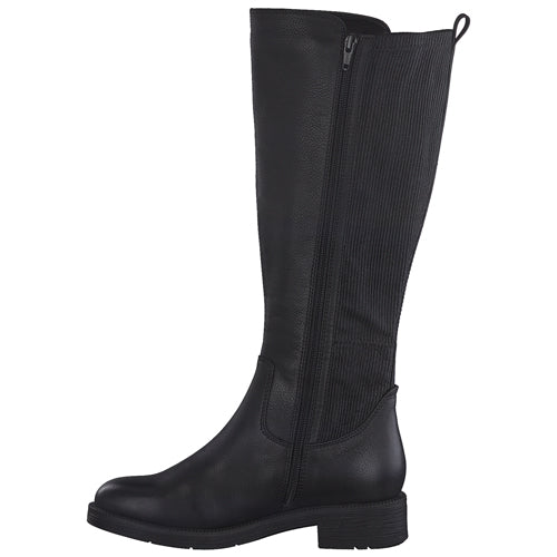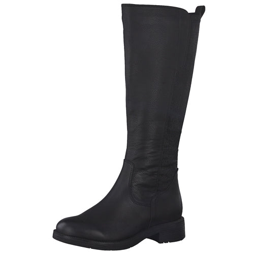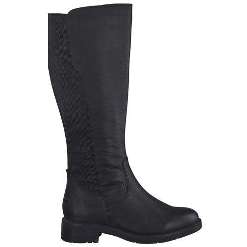 Stylishly simple equestrian style knee high boots with stretchy side shaft elastic gusset .