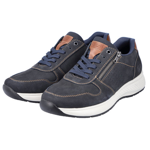 Rieker B7612 - 14 laced leather/imi-leather trainers in navy.