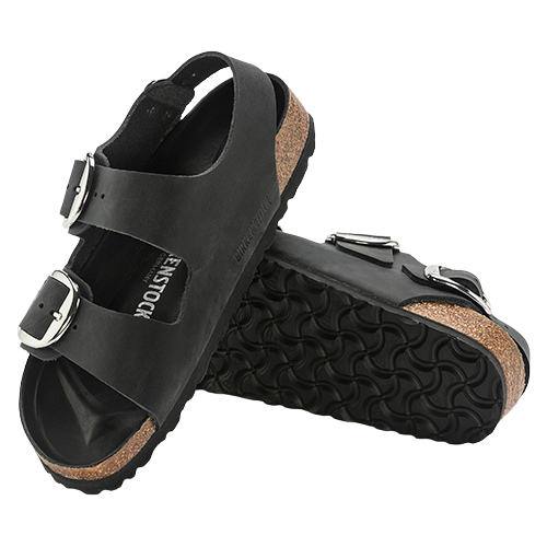 Birkenstock Ladies Oiled Leather Sandals - Milano Big Buckle - Black