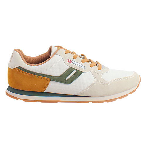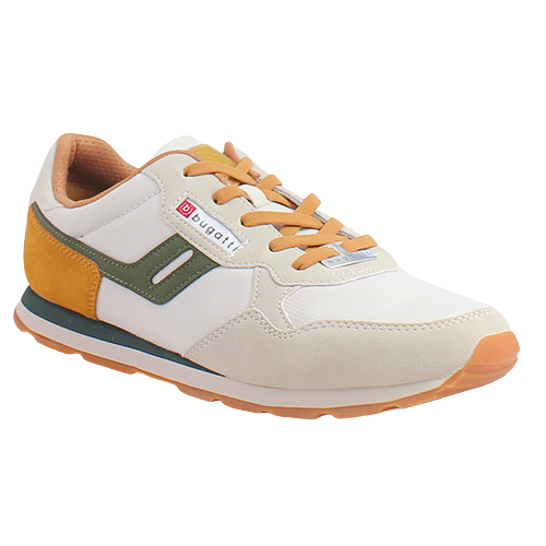 Bugatti 321-ASH01 laced men's  trainers In off white/green/mustard.