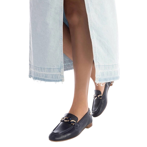 Refined leather loafers with two tone chain embellishment to front, with Carmela signature branding.