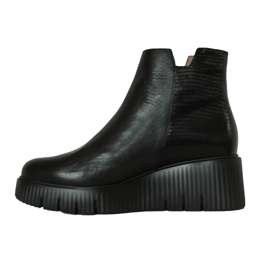 Smart and stylish , soft leather boots with back croc panel and functional outside zip.