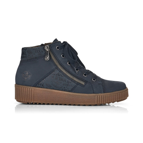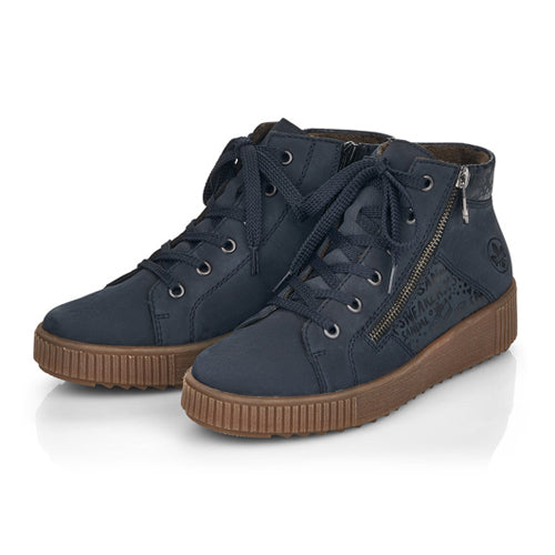 Rieker M6434-25-14 laced hi-top trainers in navy.