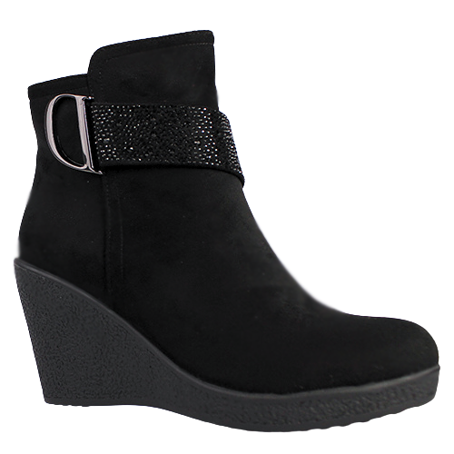 Redz Ladies Wedge Ankle Boots - D3410 - Black