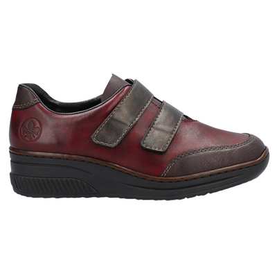 Rieker Wedge Velcro Strap Shoes - 48750-00- Wine