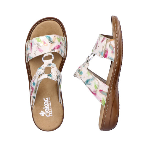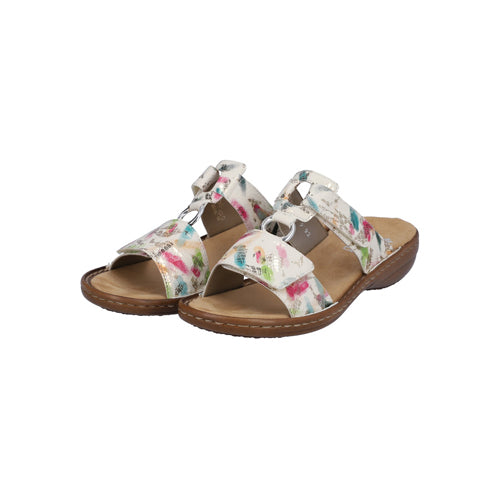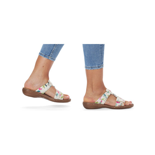 Rieker 608P9-92 imi-leather mules in white/multi.