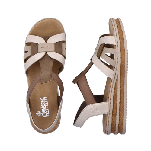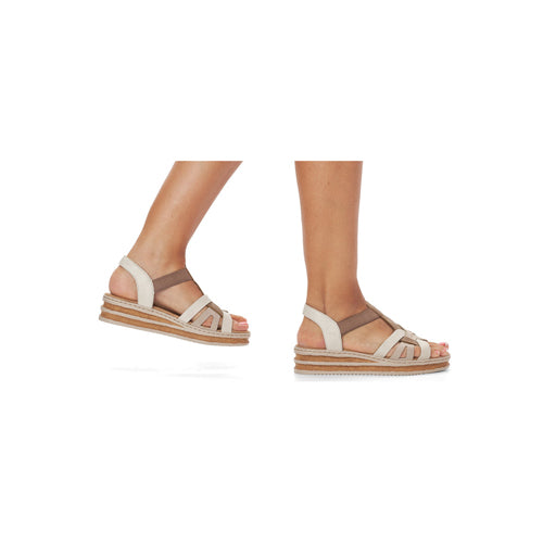 Rieker 62918-62 wedge sandals in cream/beige/taupe.