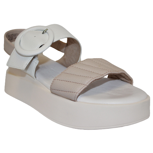 Tamaris 28013 -20 leather flatform sandals in taupe/white.