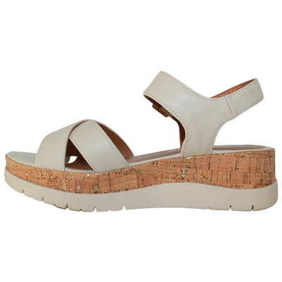 Comfortable  with soft microfibre lining and soft 'touch it 'insole which moulds to the individual foot shape with 5.5 cm cork effect/contrast wedge sole.