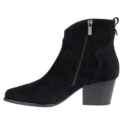 Western style, almond toed, slip on ankle boots with scalloped pattern and overstitching.