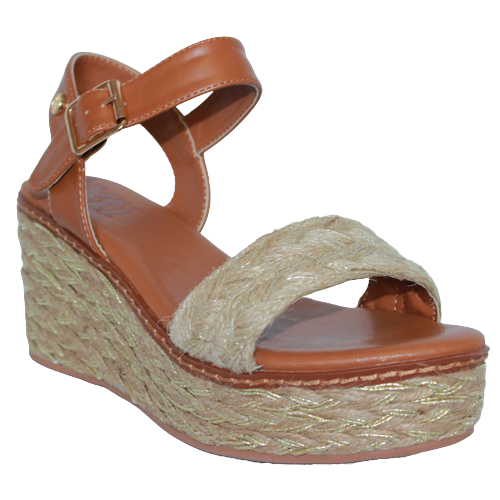 Comfortable with padded insole and plaited rattan effect 8.5 cm wedge sole.
