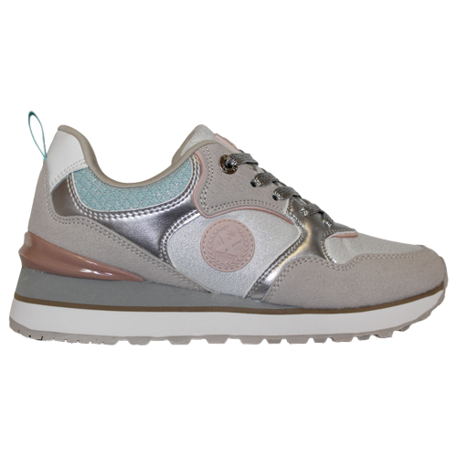 XTI 141225 laced trainers in ice/metallic/blush/aqua.